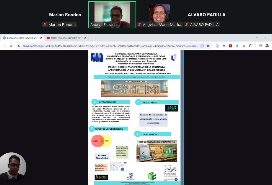 Semillero de Investigación SEINMAT y docentes de la Universidad Popular del Cesar en las modalidades de carteles virtuales y reportes de investigación, fue un espacio enriquecedor donde se compartieron experiencias educativas y la investigación en educación matemática fue celebrada como un pilar fundamental para la transformación de las prácticas pedagógicas.