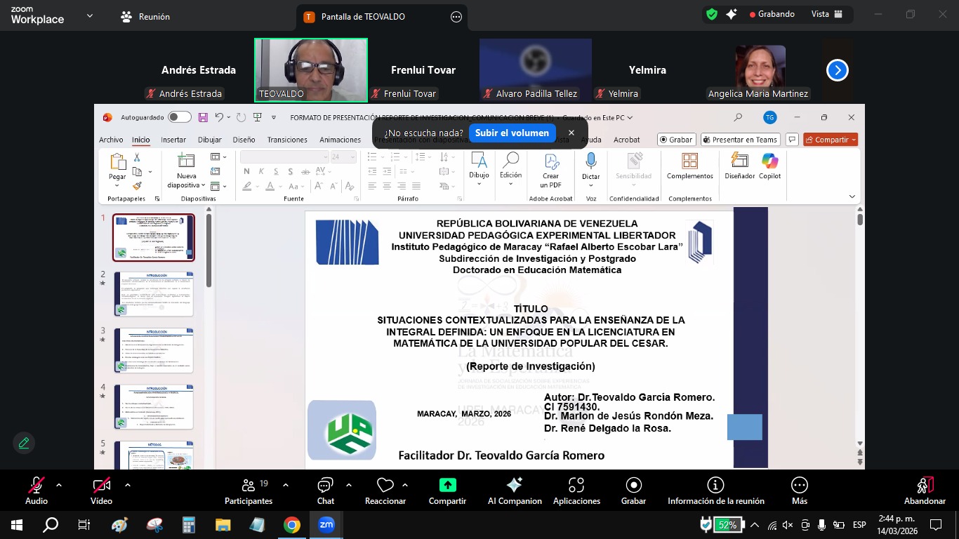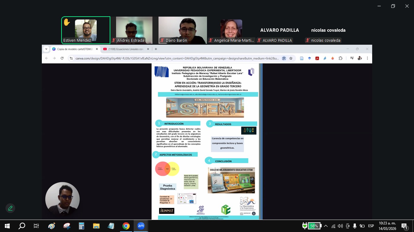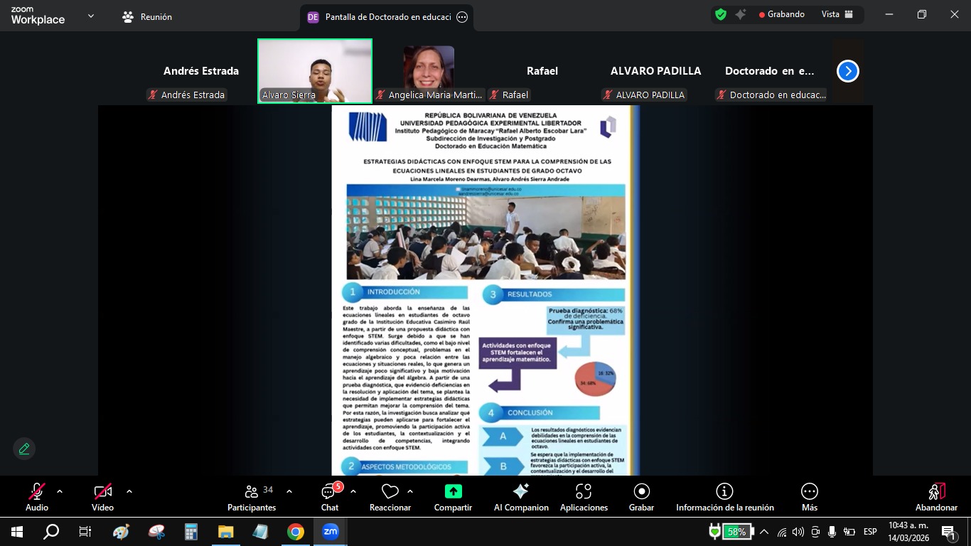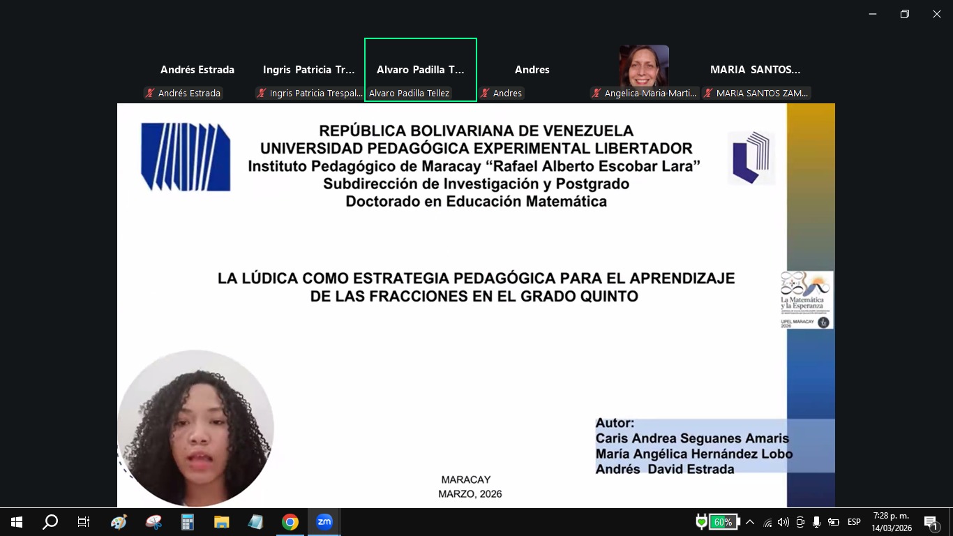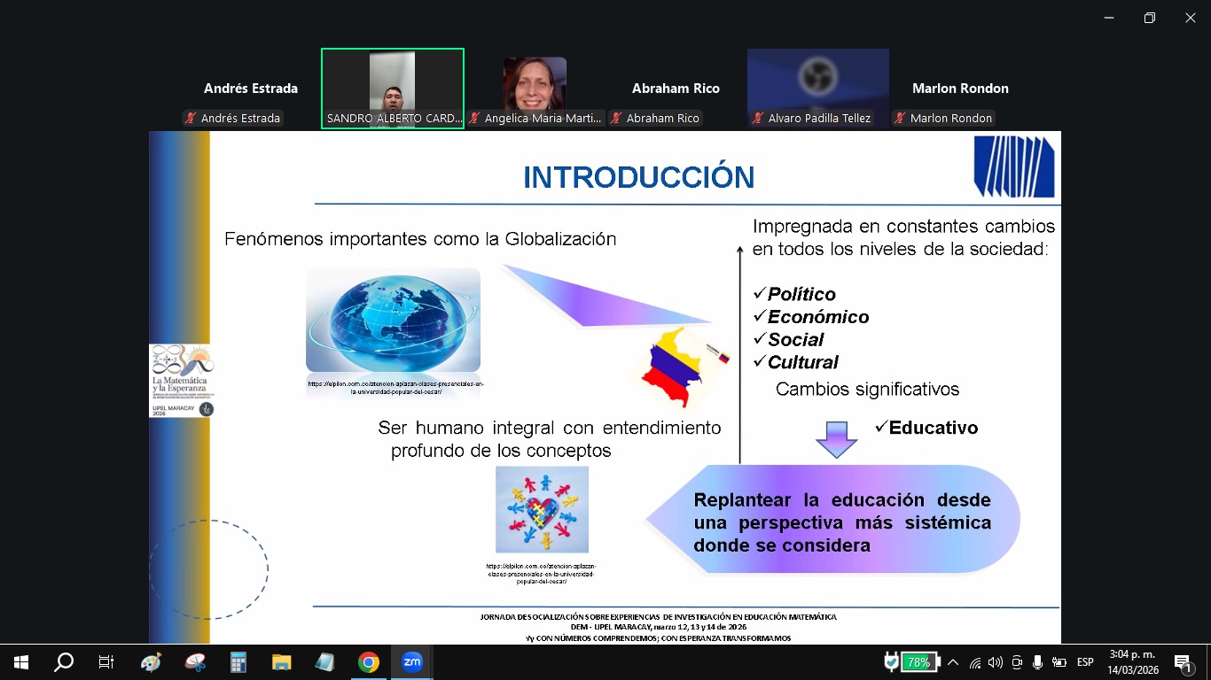 Entre el 12 y el 14 de marzo de 2026 se llevó a cabo el evento Jornada de Socialización de Experiencias en Investigación del Doctorado en Educación Matemática, organizado por la UPEL -MARACAY. En este evento hubo una destacada participación de los integrantes del